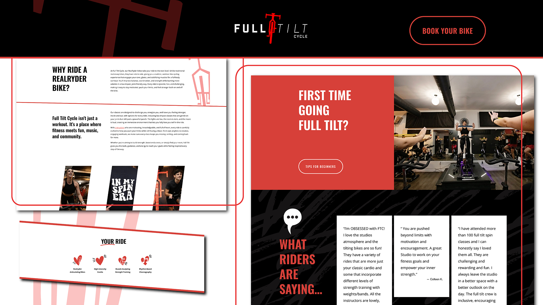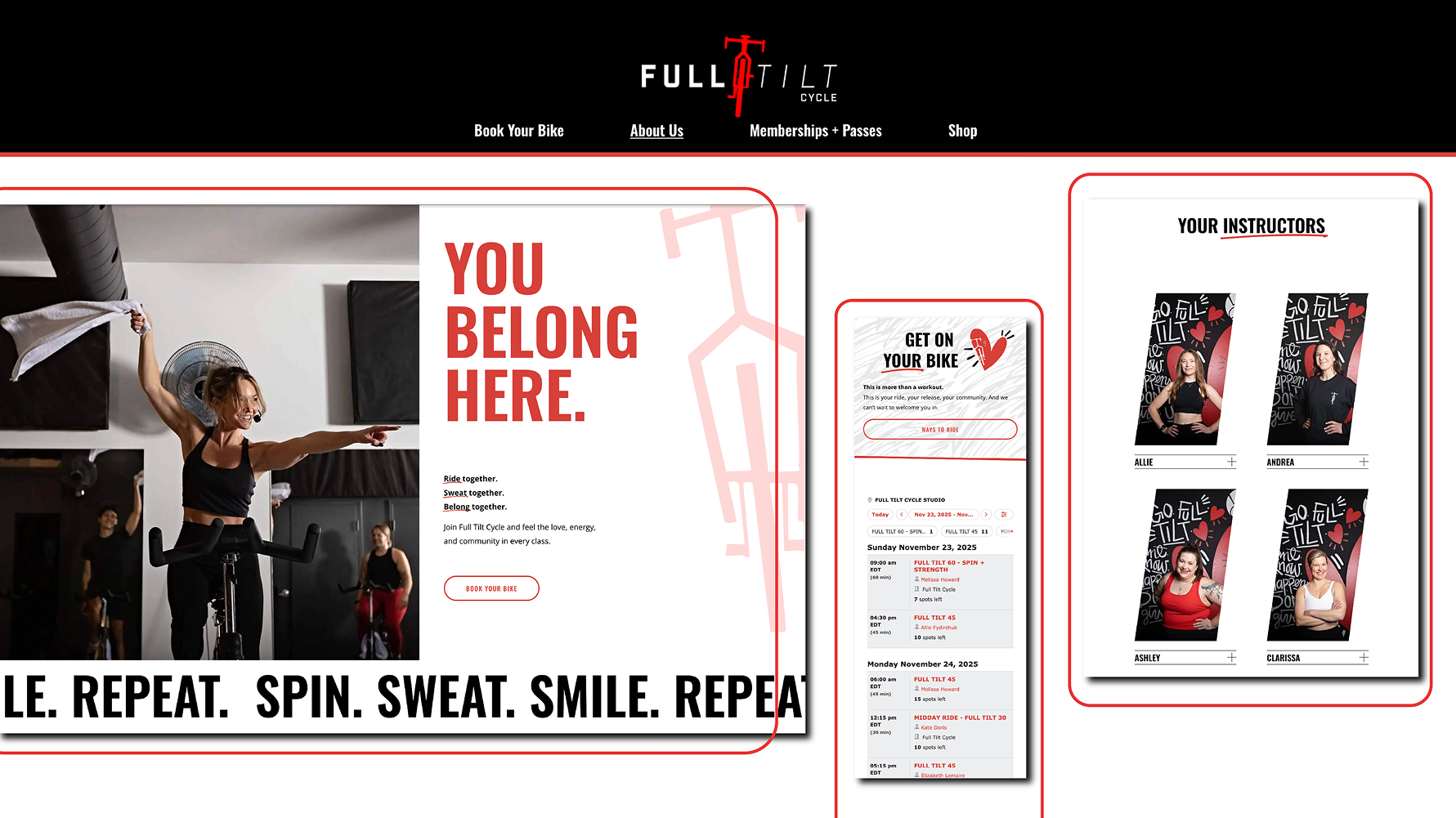 Full Tilt Cycle is a community-focused spin studio built for Peterborough locals. We designed and developed a custom Squarespace website that brings their energy online while making it easier for both staff and riders to manage classes, passes, and memberships in one place.