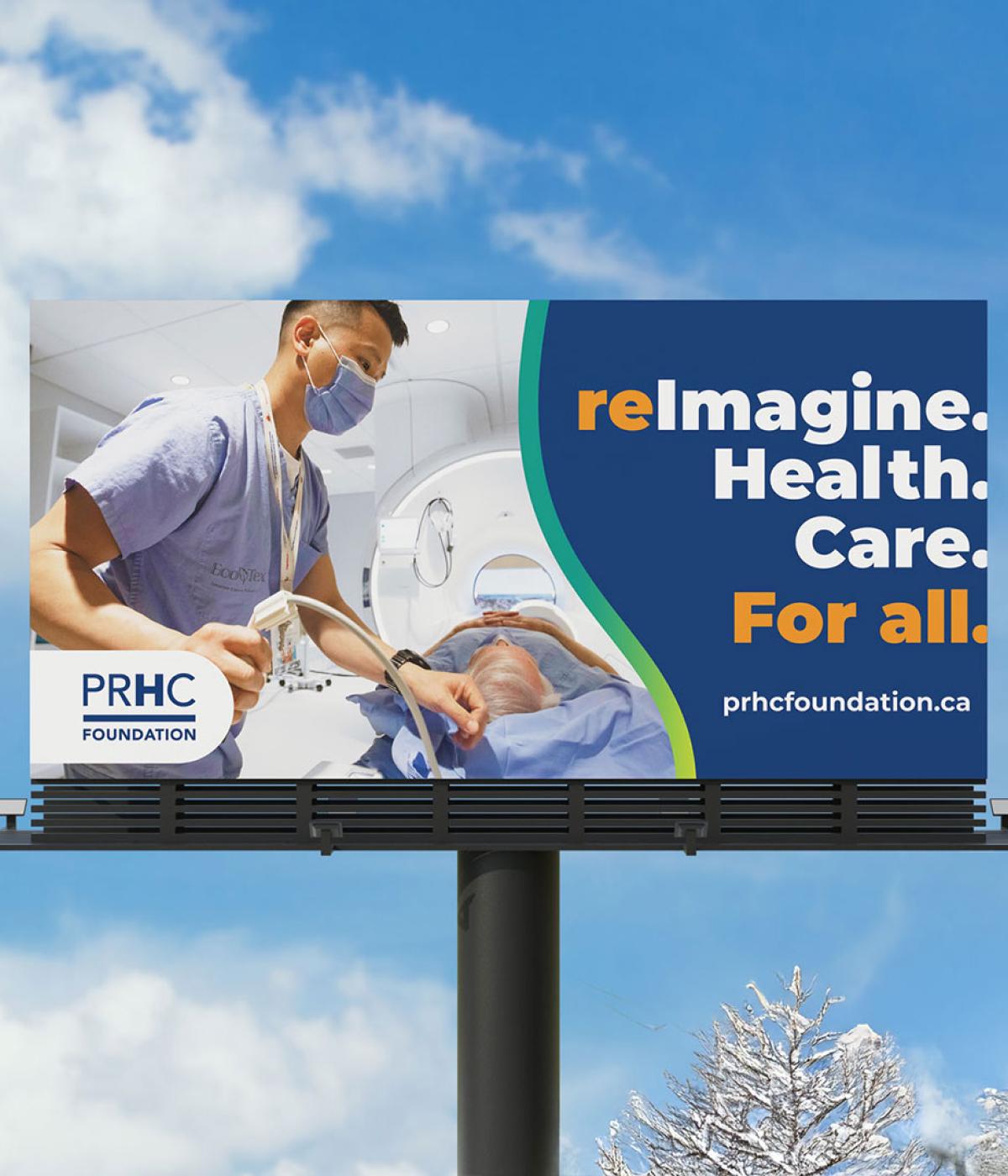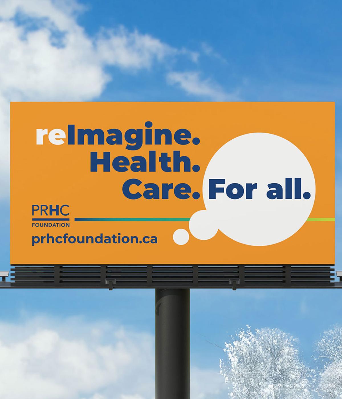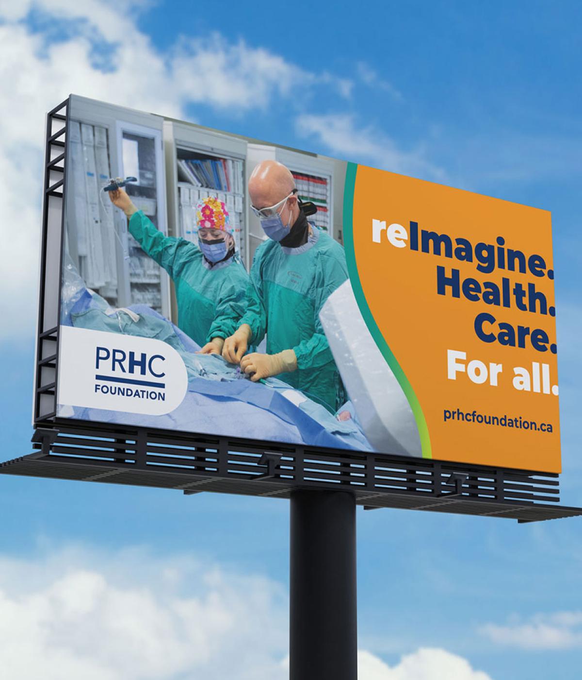 We partnered with the PRHC Foundation to bring their reImagine. Health. Care. campaign to large-format life. The billboards were designed for simplicity and strength with bold typography, bright colour, and purposeful imagery working together to share a message that feels both human and hopeful.